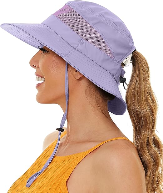 Sun Hat with Ponytail Hole for Women,Sun UV Protection UPF50+ Waterproof Beach Bucket Safari Hiking Hat for Women